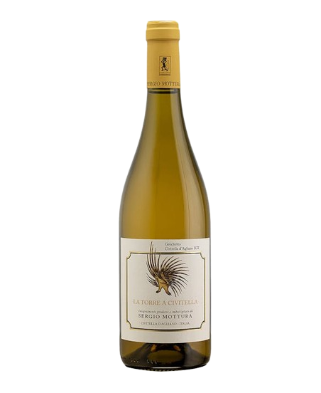 Incastonata tra le colline argillose e i calanchi della Tuscia a ovest, e la fertilità delle pianure umbre del Tevere ad est, la cantina guidata da Sergio Mottura lavora la terra facendosi custode di un patrimonio di biodiversità e di profonda tradizione vinicola. Dai suoli principalmente vulcanici, parte del complesso vulcanico dei monti Vulsini e del lago di Bolsena, nascono le uve di Grechetto che danno vita a La Torre a Civitella, un bianco di grande carattere, complesso e avvolgente che distingue per i suoi profumi intensi ed eleganti con note di frutta bianca, agrumi, nocciola e burro fuso. Al palato è rotondo e vellutato con un finale persistente e lievemente tannico che ben si sposa con piatti sapidi e dal gusto deciso come la zuppa di cipolle e speziati come il pollo al curry ma anche con sushi, crostacei, risotto alla milanese e ossibuchi.